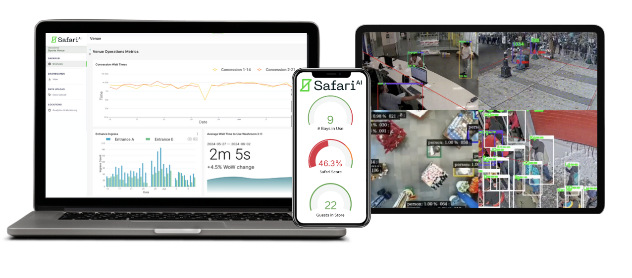 Live Venues use Safari AI to improve the Speed of Service throughout the Guest Journey at parking, entrances, concessions and retail.